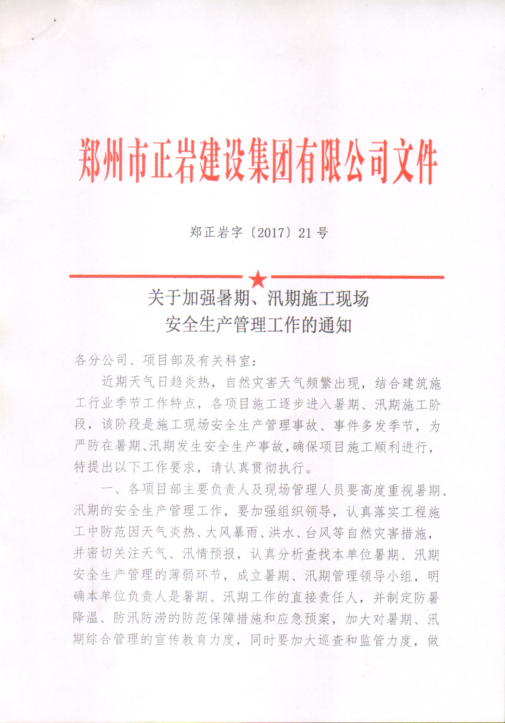關(guān)于加強(qiáng)暑期、汛期施工現(xiàn)場(chǎng)安全生產(chǎn)管理工作的通知