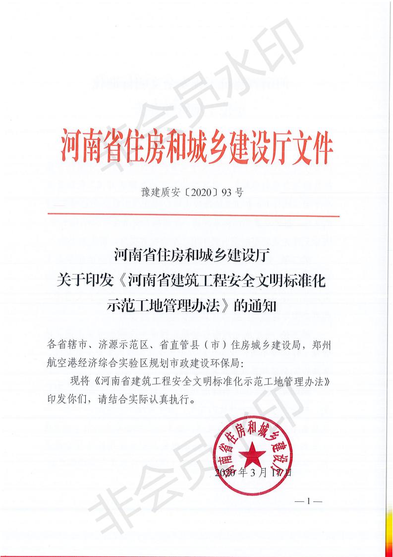 河南省住房和城鄉(xiāng)建設(shè)廳關(guān)于印發(fā)《河南省建筑工程安全文明標(biāo)準(zhǔn)化示范工地管理辦法》的通