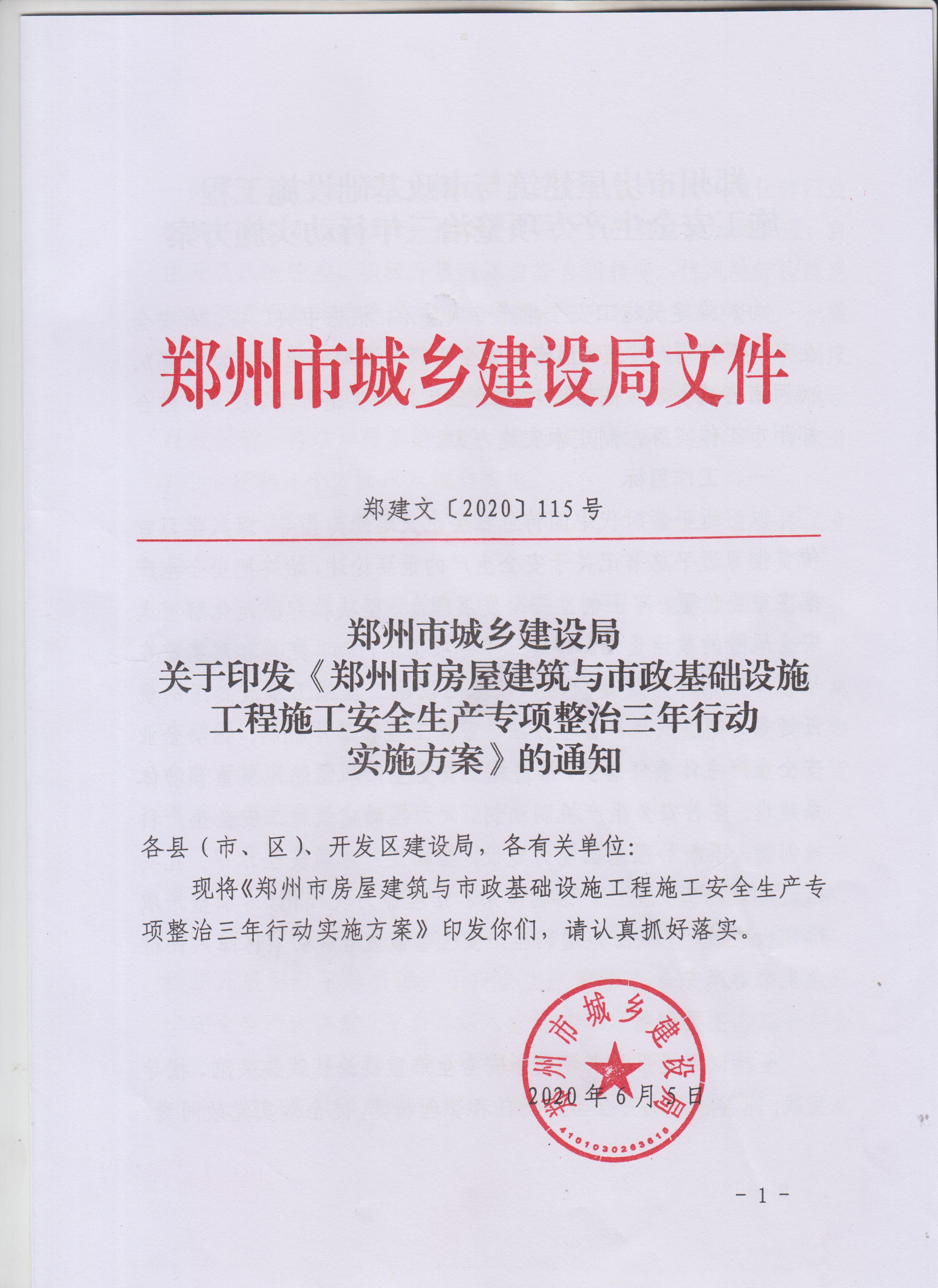 鄭州市城鄉(xiāng)建設(shè)局關(guān)于印發(fā)《鄭州市房屋建筑與市政基礎(chǔ)設(shè)施工程施工安全生產(chǎn)專項(xiàng)整治三年