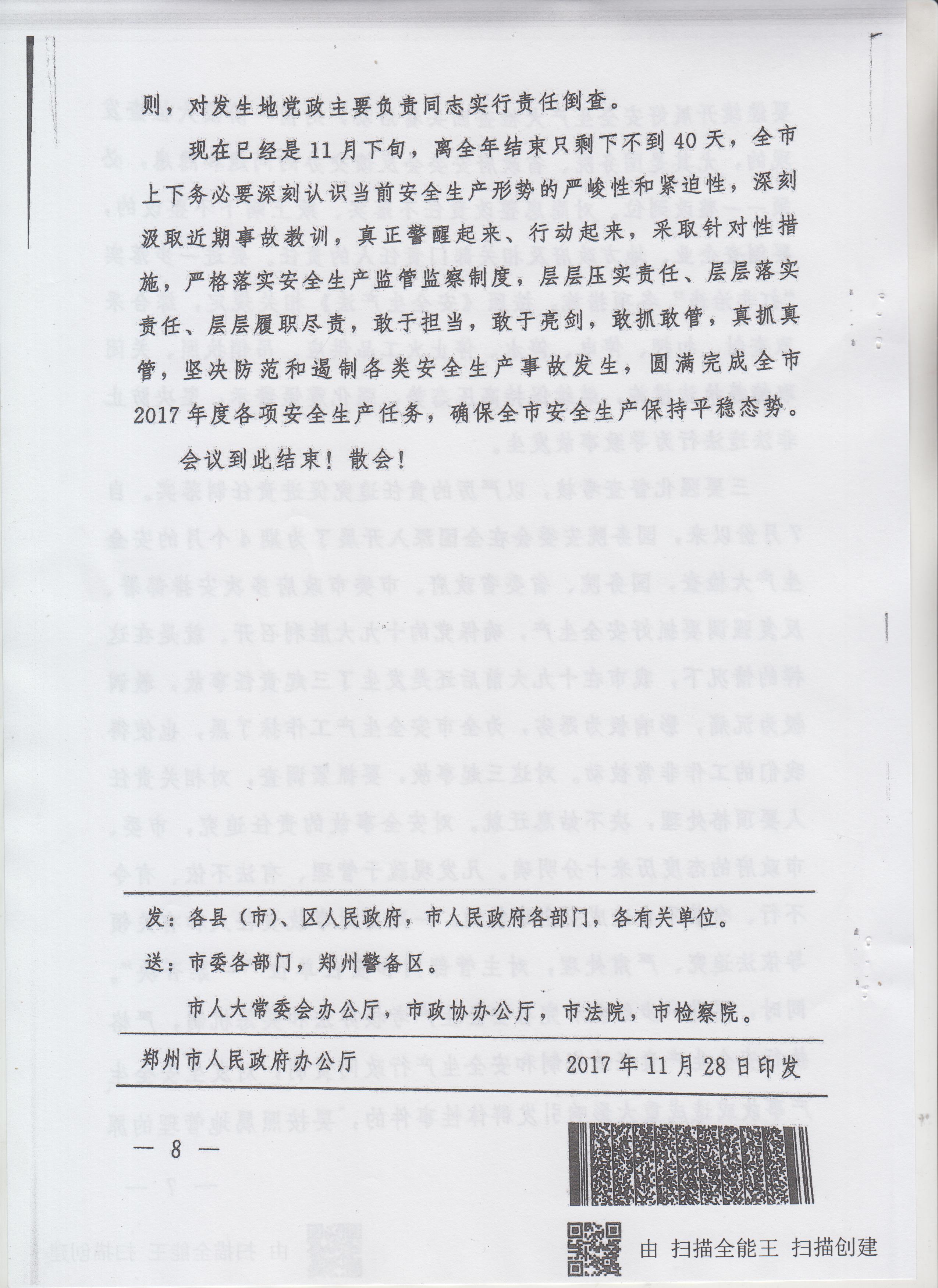 關(guān)于轉(zhuǎn)發(fā)豫安委辦明電【2017】49號(hào)文件、鄭安監(jiān)管【2017】187號(hào)文件、鄭安委辦【2017】98號(hào)文件、鄭政閱【2017】42號(hào)、《認(rèn)真汲取北京、天津重大火災(zāi)事故教訓(xùn)》的通知