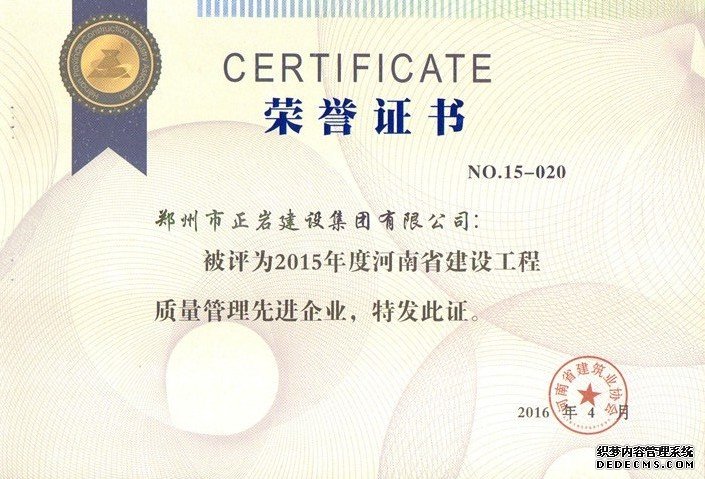 2015年度河南省建筑業(yè)質(zhì)量先進企業(yè)