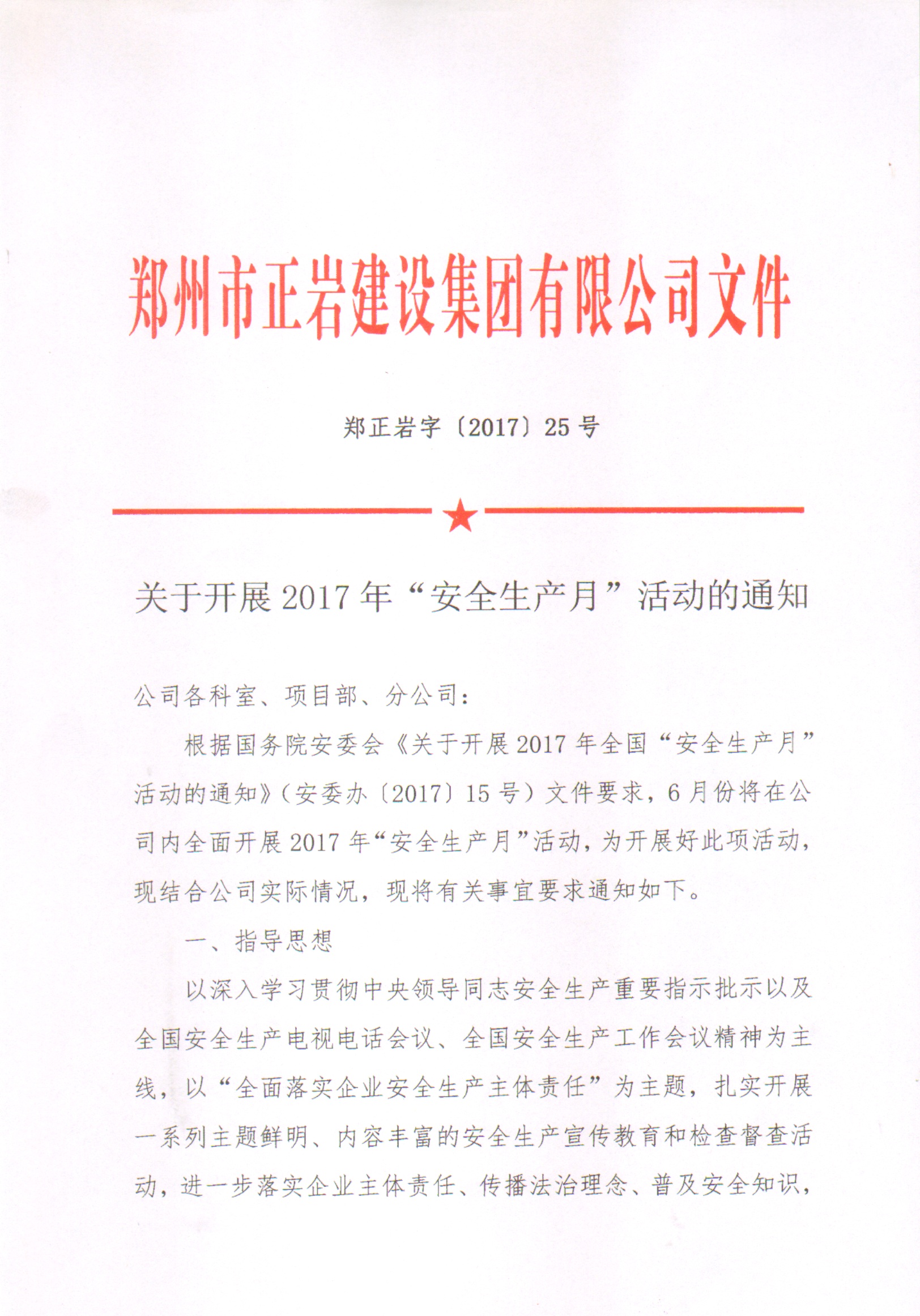 關(guān)于開展2017“安全生產(chǎn)月”活動的通知
