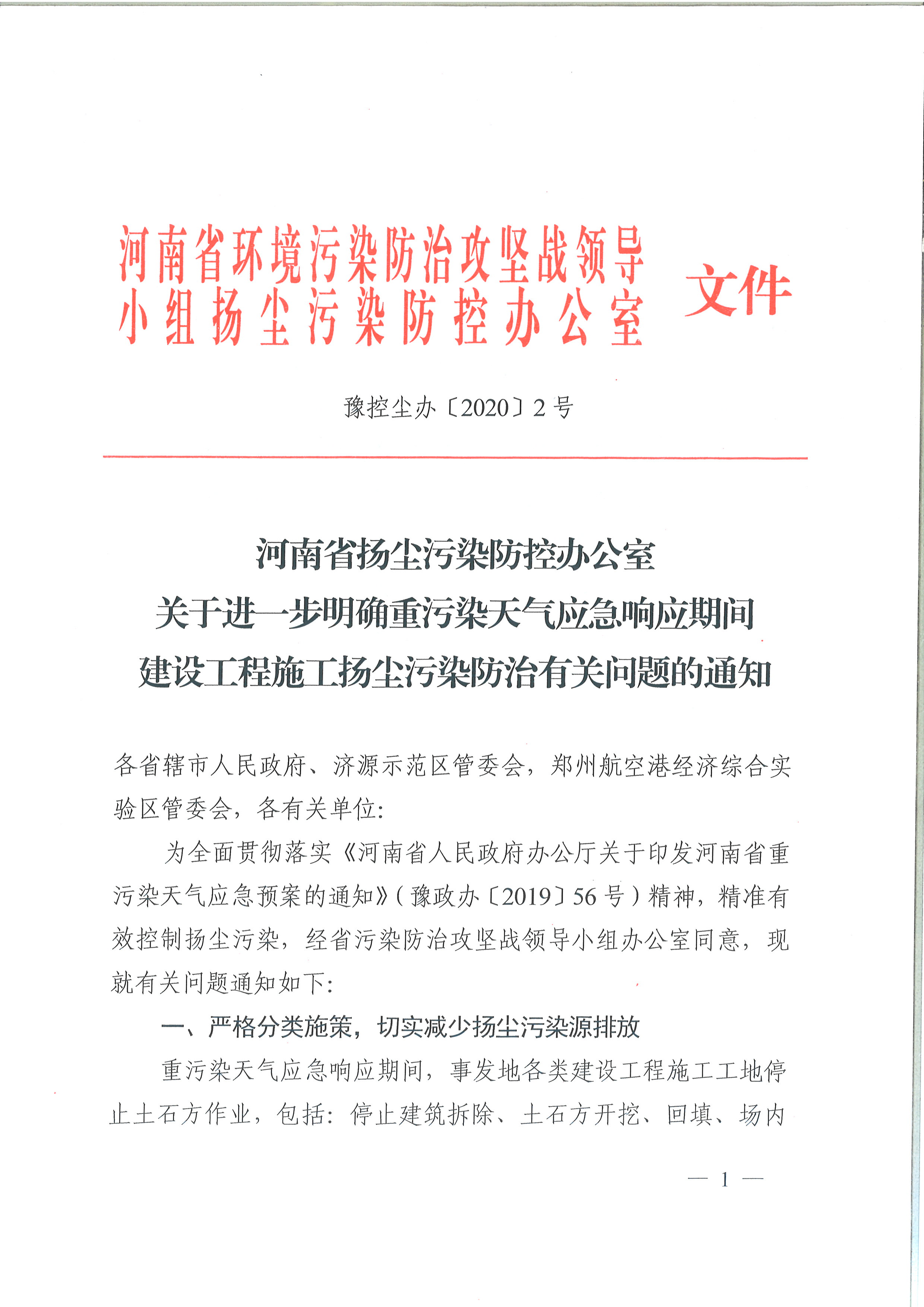 河南省揚(yáng)塵污染防控辦公室關(guān)于進(jìn)一步明確重污染天氣應(yīng)急響應(yīng)期間建設(shè)工程施工揚(yáng)塵污染防