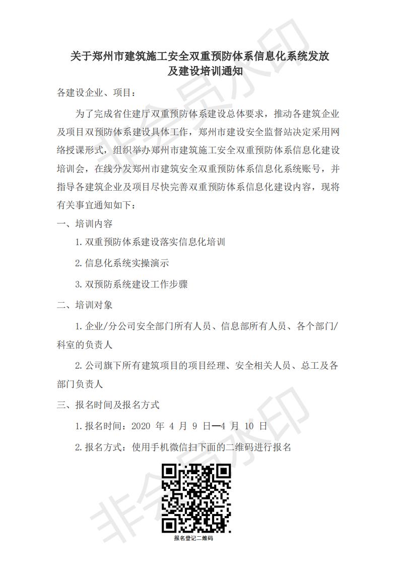 鄭州市雙重預(yù)防體系信息化系統(tǒng)發(fā)放及建設(shè)培訓(xùn)通知