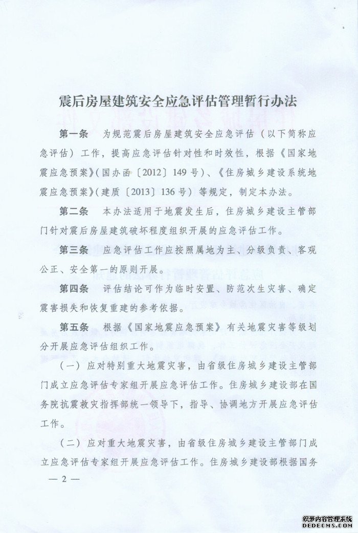 為進(jìn)一步提升住房城鄉(xiāng)建設(shè)系統(tǒng)地震應(yīng)急響應(yīng)能力,做好我市震后房屋建筑安全應(yīng)急評(píng)估工作,現(xiàn)將《住房城鄉(xiāng)建設(shè)部關(guān)于印發(fā)震后房屋建筑安全應(yīng)急評(píng)估管理暫行辦法的通知》轉(zhuǎn)發(fā)給你們,請(qǐng)結(jié)合本地區(qū)實(shí)際遵照?qǐng)?zhí)行?!?/span>